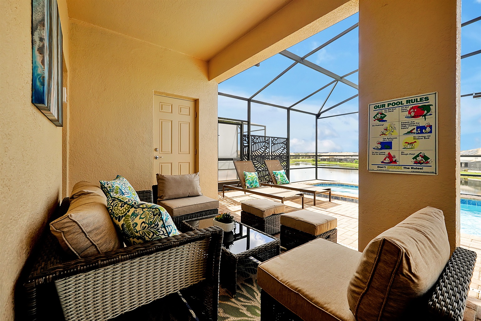 ARE YOU LOOKING for a vacation home that is full of fun on a waterfront lot with a great view? This is it. It was completely renovated with 2 theaters (one poolside) and has an incredible arcade game room. It is located in Windsor At Westside Resort, which has a large clubhouse (with exercise room and restaurant) and water park. And, it's only 15 minutes from Disney World. YOU WILL LOVE THIS HOME!