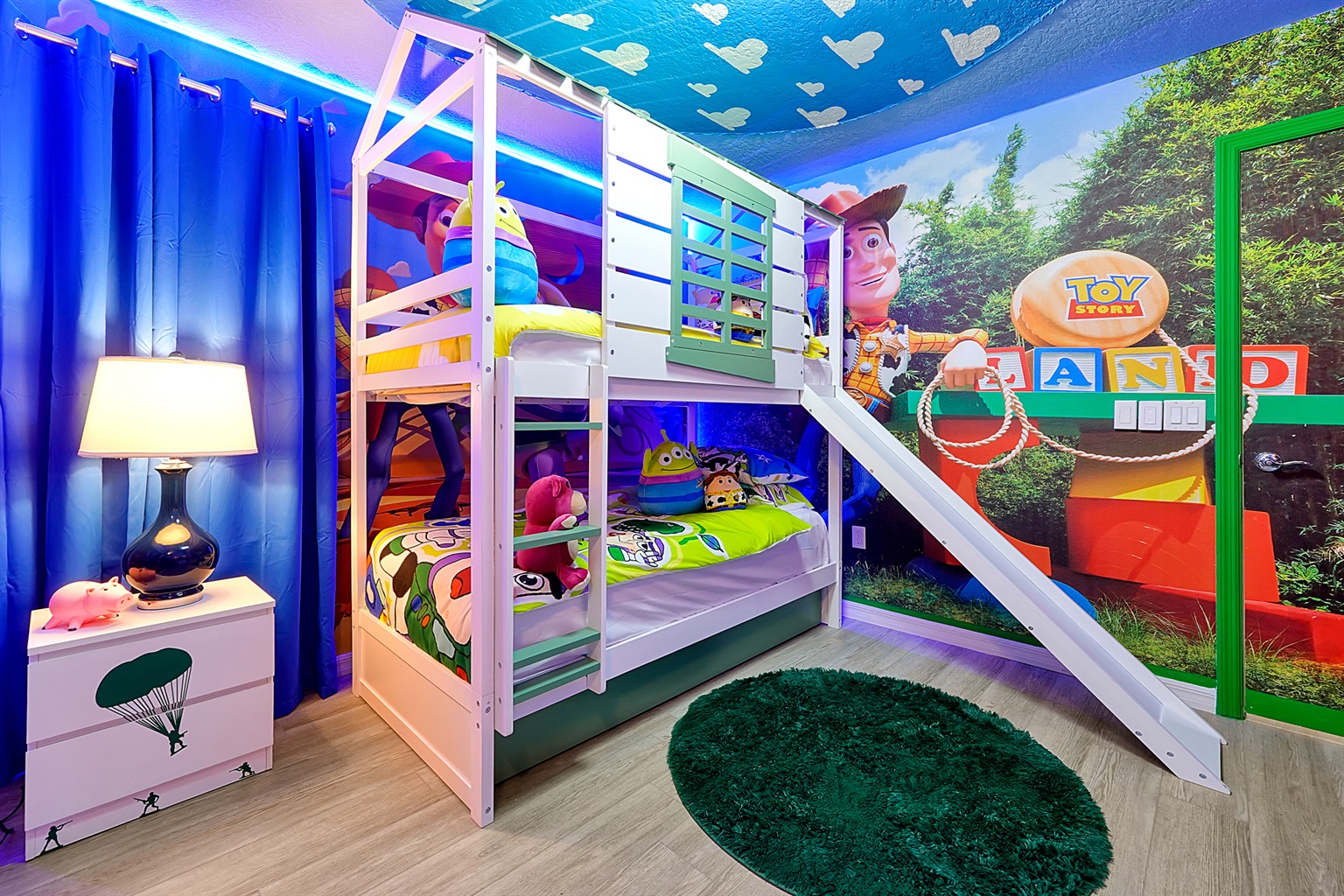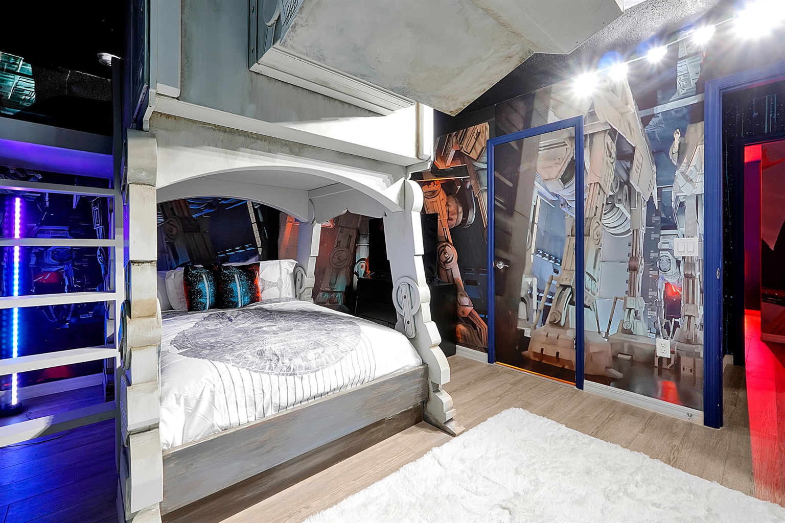 Bedrooms: 9 Total. 1st FLOOR: 2 Suites w/ Kings. 2nd FLOOR: 3 Suites w/ Kings; 4 Themed Bedrooms (Avengers, Toy Story, Star Wars, and Harry Potter)- SLEEPS 18 MAX